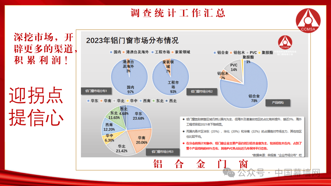 2023年的铝门窗幕墙行业内,喜忧参半、企业家们的情绪差异也非常巨大,失望者有之,庆幸者有之,悲观者有之,这是一个波澜壮阔的大时代。在诡谲的时期,坚定信心、愿意坚守与付出的企业家们才能做好企业,做大市场,做优产品,任何的侥幸与吝啬对企业的发展都无好处。