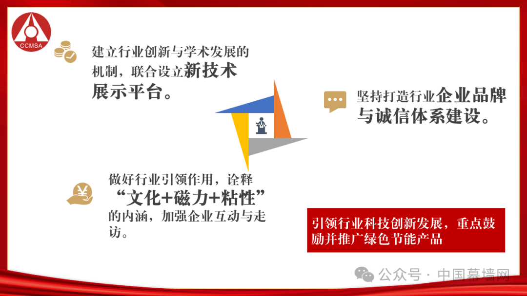 同时,我们要紧跟行业上下游产业链的步伐,坚定的走高质量发展的道路,中国门窗幕墙行业人从未拥有过这么强烈的信心,我们是跨越周期的真“墙”者,我们是新周期的开“窗”者,更是行业集体智慧的建立者、发明者……